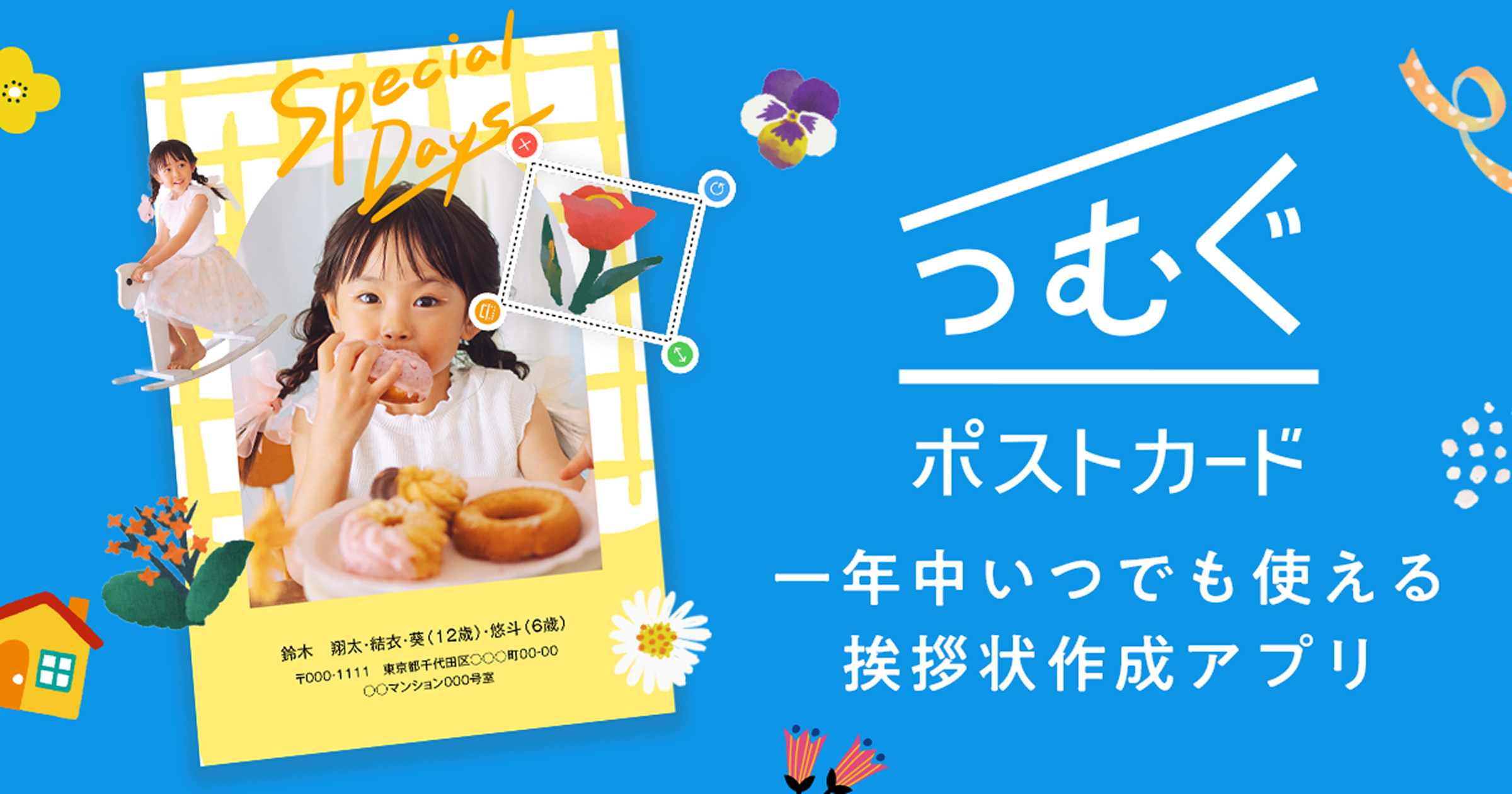 思い出の写真や家族の写真を使って、特別な年賀状を作成することができます。